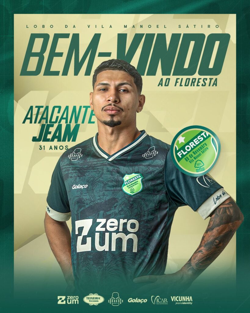 O Floresta oficializa a contratação do atacante Jeam para a disputa do Campeonato Brasileiro Série C. O jogador retorna ao Verdão da Vila, reforçando o setor ofensivo da equipe para a sequência da temporada.